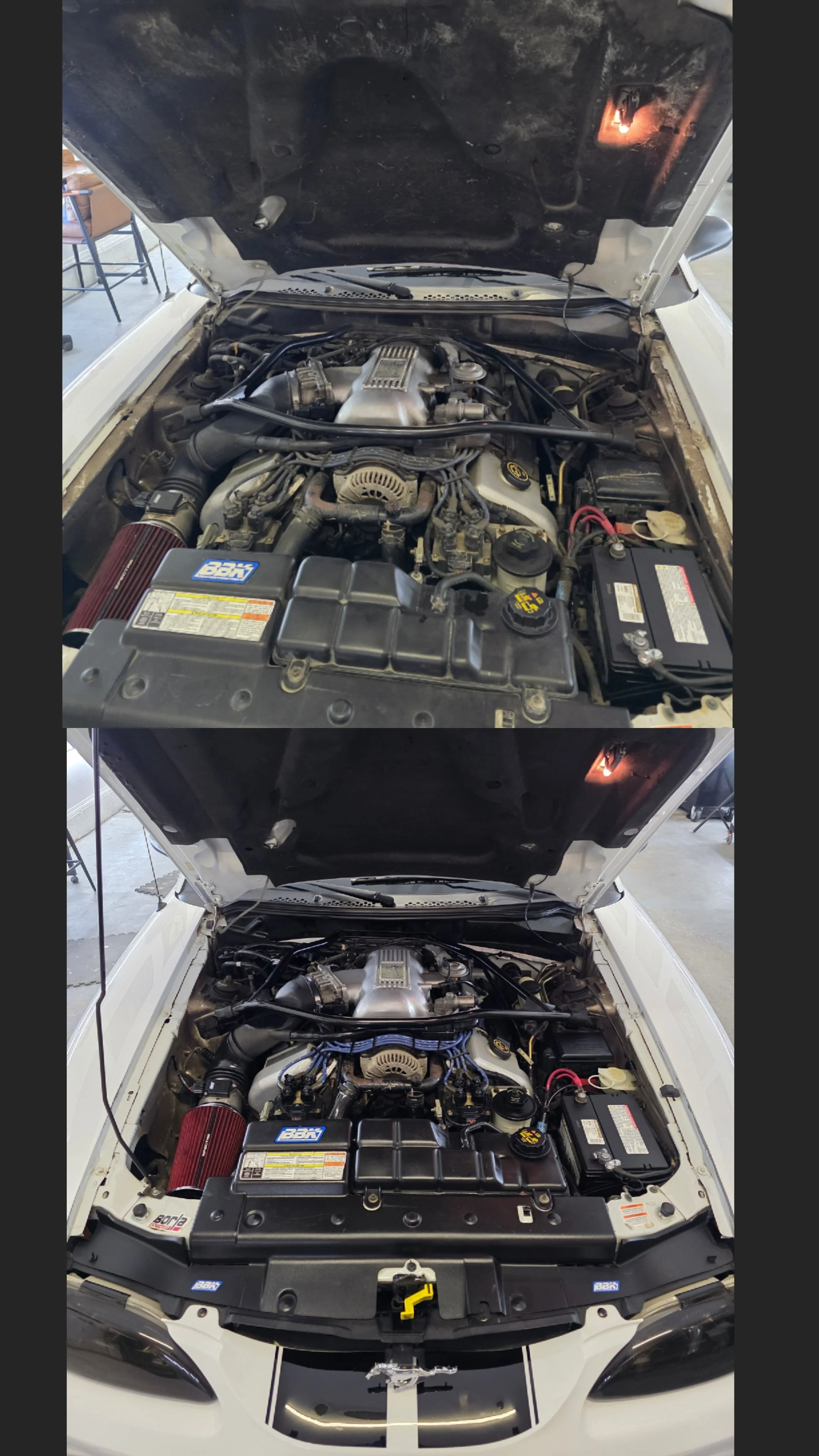 A thorough, cleaning/degreasing of the engine bay and areas followed by protecting the rubber and vinyl components.